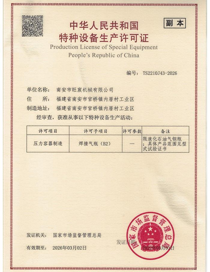 南安市旺宸機(jī)械有限公司是一家專注于特種設(shè)備制造的先進(jìn)企業(yè),主營液化石油氣鋼瓶的生產(chǎn)與研發(fā),不僅是福建省內(nèi)的佼佼者,亦是國家認(rèn)證的二類壓力容器(B2級)制造商。公司坐擁12000平方米的現(xiàn)代化廠區(qū),集自動化與半自動化生產(chǎn)線于一體。